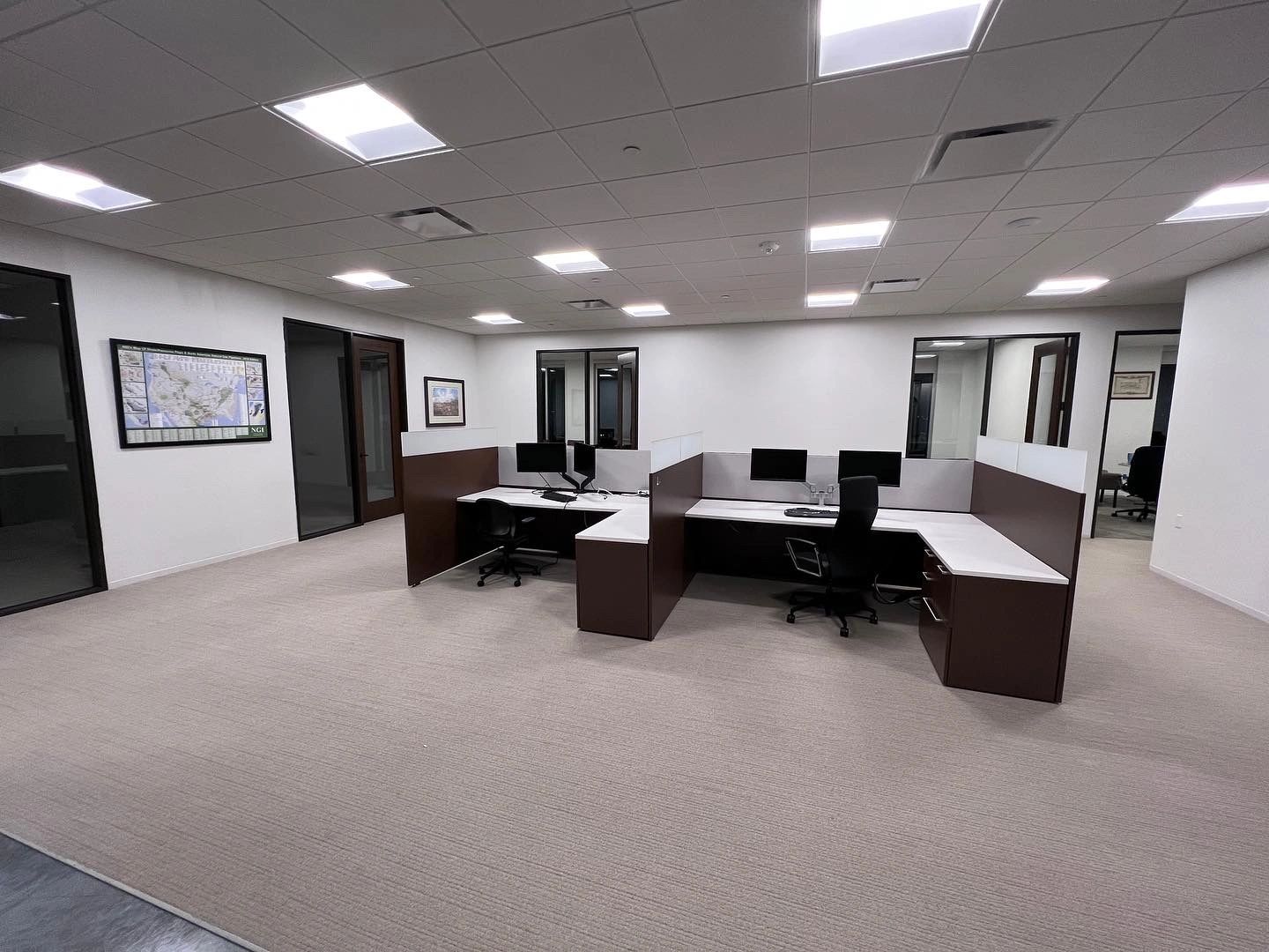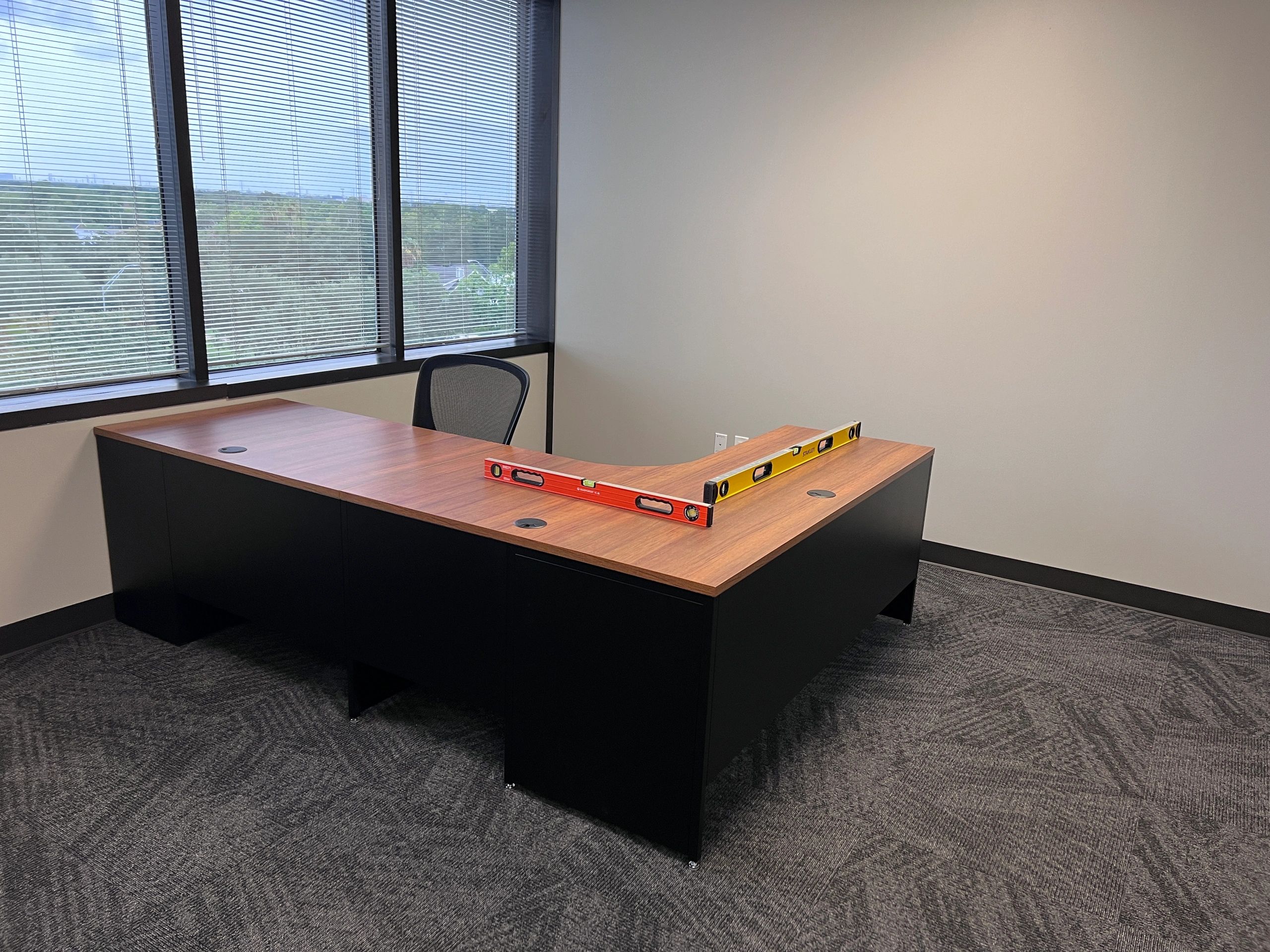 1- Assembly and Installation of Four L Shape desks with Hutch